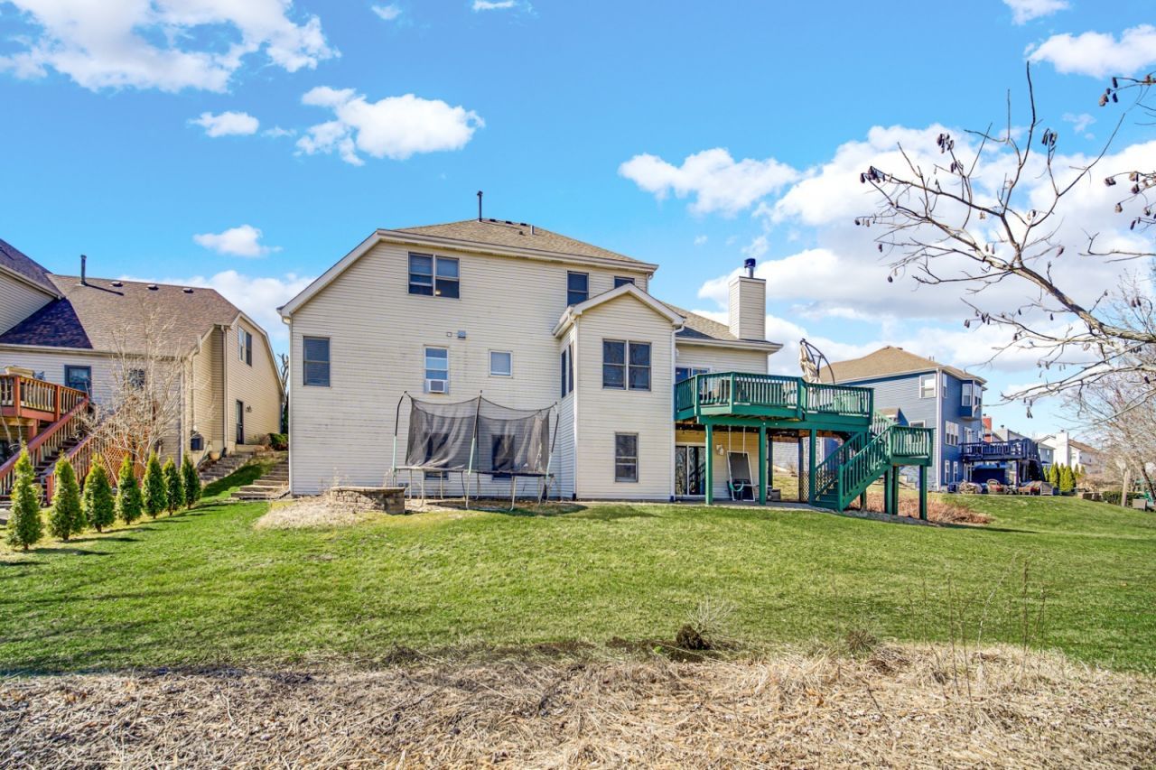 Welcome to this beautifully upgraded home in the sought-after Mill Creek community, where space, design, and lifestyle come together effortlessly. Step into a bright, welcoming foyer that opens into an expansive family room filled with natural light from elegant transom windows. Plantation shutters and rich hardwood flooring throughout most of the main level create a warm, refined atmosphere. At the heart of the home, the custom kitchen is designed for both everyday living and serious entertaining. Featuring double ovens, a warming drawer, a six-burner gas cooktop with pot filler, granite countertops, stone accents, abundant cabinetry, and a walk-in pantry, this space delivers both function and style without compromise. The main level offers true convenience with a spacious primary suite, a dedicated office, a well-placed laundry room with newer washer and dryer, and a powder room-ideal for both daily living and guests. Upstairs, three generously sized bedrooms each include walk-in closets, providing comfort and storage for everyone. The finished walkout basement dramatically expands your living space, offering a large recreation room, wet bar, additional family room area, full bathroom, and a versatile bonus room perfect for a guest suite, office, or playroom. Outdoor living is just as impressive, with a spacious deck and paver patio overlooking the scenic Mill Creek Golf Course-a perfect setting for quiet evenings or entertaining guests. Located within the vibrant Mill Creek community, residents enjoy access to golf, a pool, tennis courts, walking trails, and a recreation center, all just minutes from downtown Geneva and Metra access. Major updates include a furnace and water heater (2020) and full gutter leaf guard installation for added peace of mind. This home offers the rare combination of thoughtful upgrades, flexible living space, and a lifestyle-focused location.