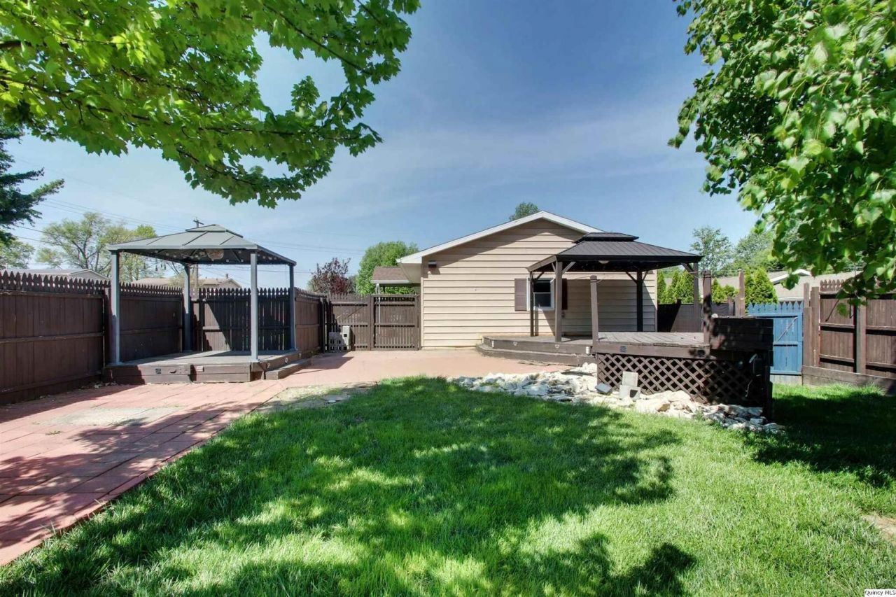 This ranch home truly shines outdoors! A charming covered front porch welcomes you, while a wood deck walkway wraps around to your outdoor retreat! The yard is a private oasis, fully enclosed with a tall wood privacy fence & thoughtfully designed for entertaining & everyday enjoyment! Relax under the spacious pergola covered deck, host cookouts on the separate grilling deck or gather on the concrete patio surrounded by beautiful landscaping & trendy outdoor lighting. Bonus: the storage shed conveys! Main level offers a large living room, 3 bedrooms, updated full bath & modern eat-in kitchen with white cabinets & stainless steel appliances. Just off the kitchen, you'll find direct access to the attached 1-car garage with dedicated workspace. Full finished basement offers a poured foundation, huge 12x29 family room, plus oversized recreation area with egress window-perfect for future 4th bedroom, home office, or hobby space. Complete with a second full bath and utility room with storage space & laundry hookups makes this lower level functional & full of possibilities! Live, Relax & Entertain!