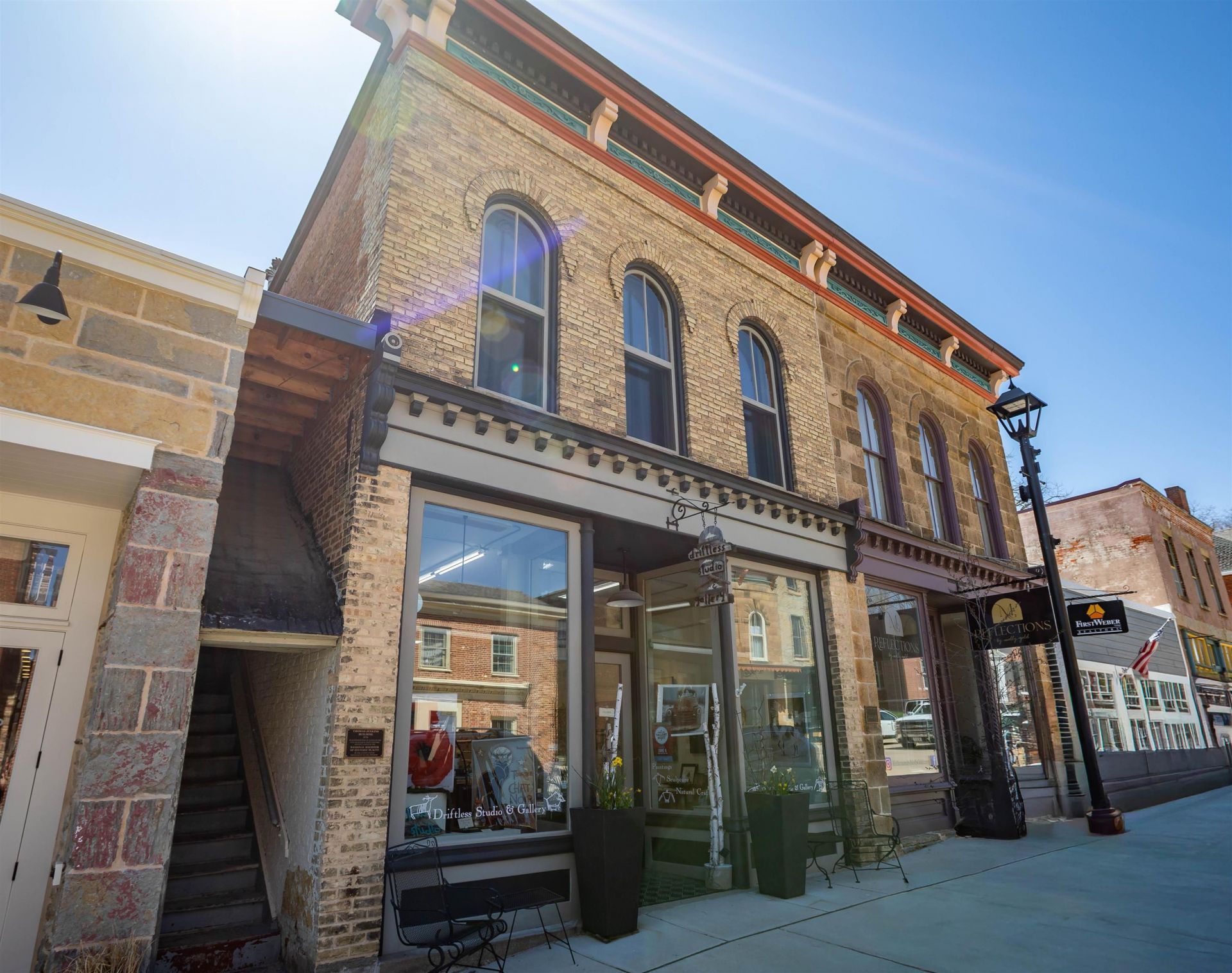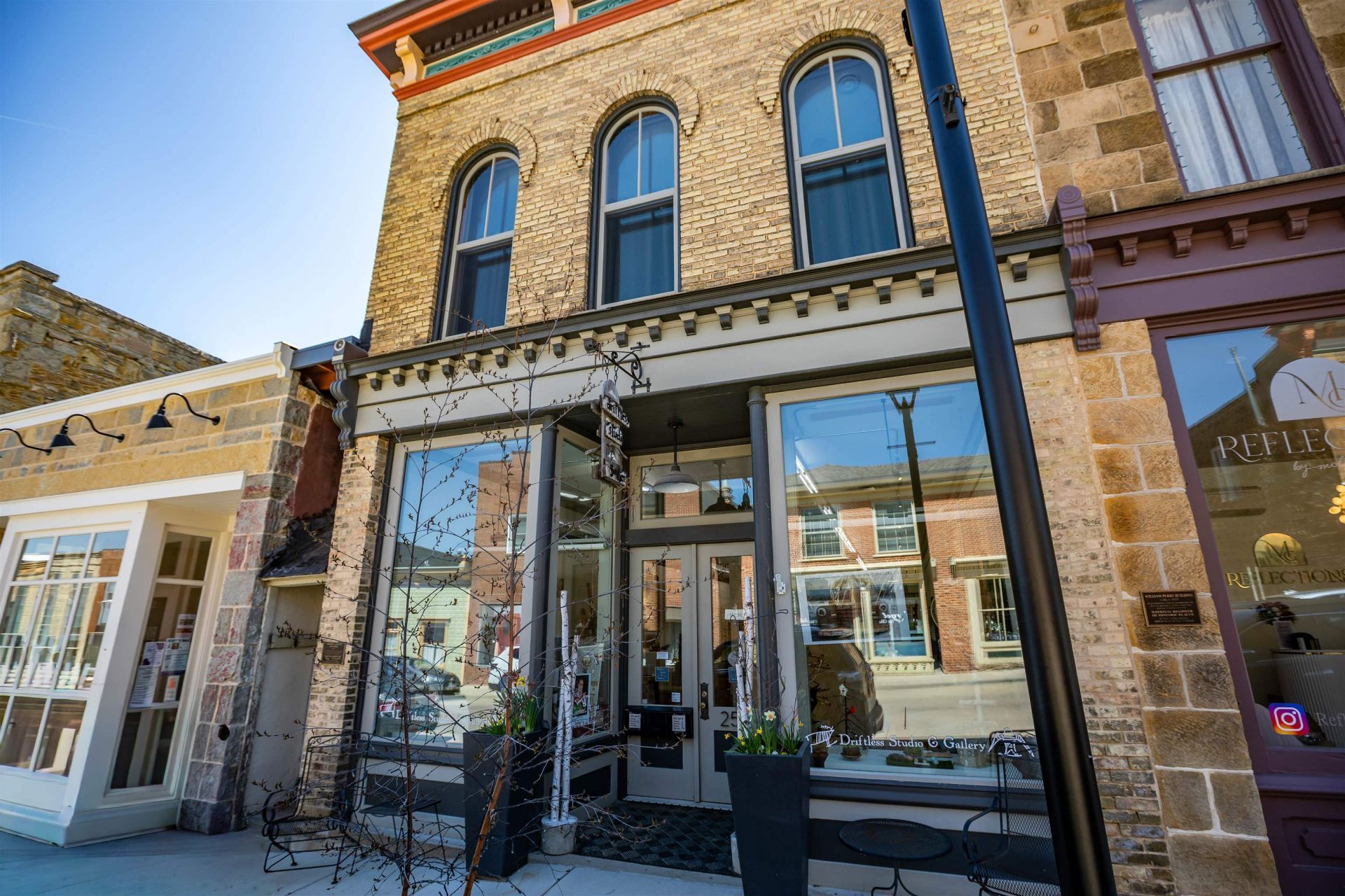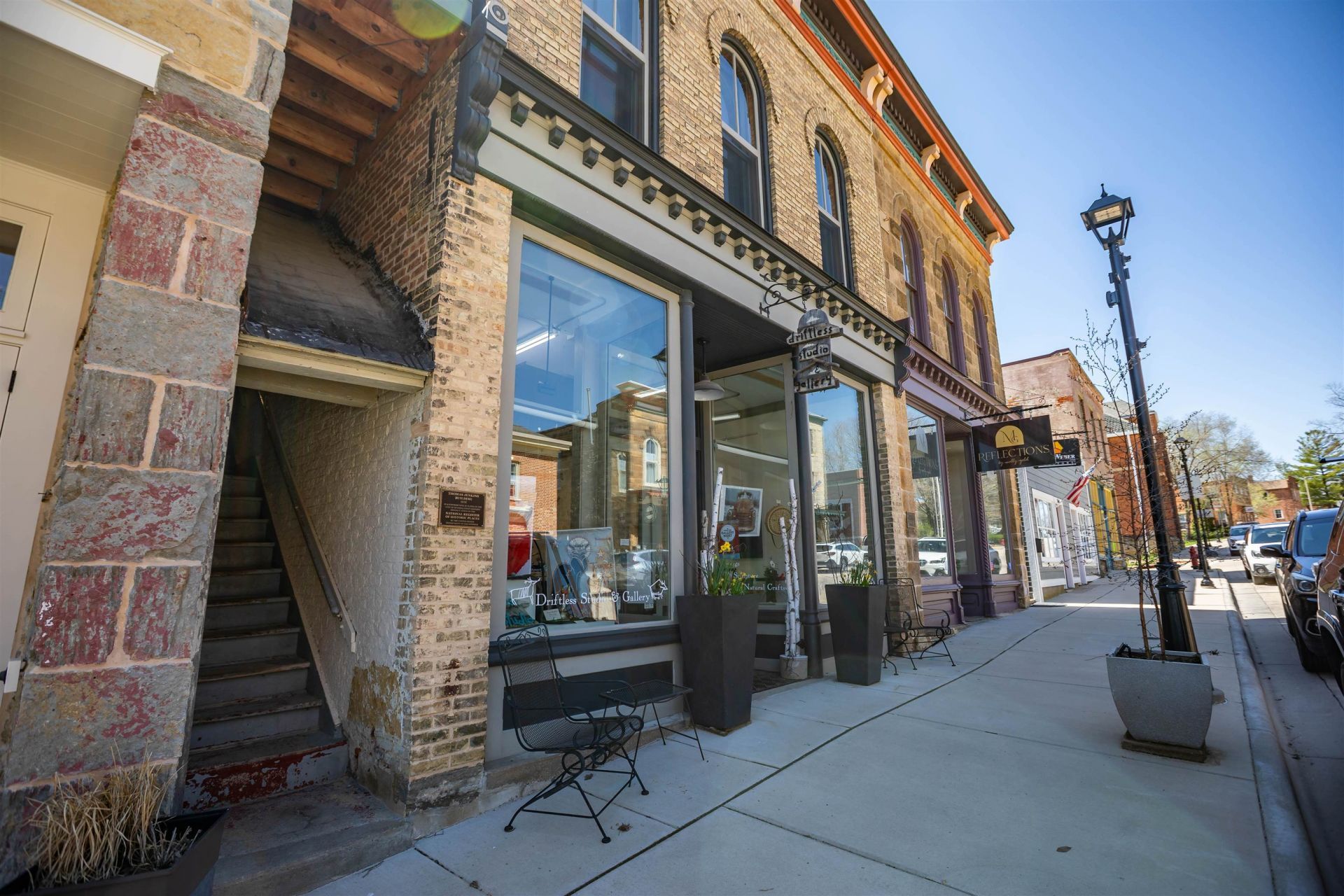 Built in 1850, this landmark historic building on Mineral Point's High St has undergone significant restoration and transformation. The bright, open commercial level currently functions as a gallery with large display windows, rolling sectional dividers, track lighting and a hanging system and could easily serve as a retail/office space. On the second level, there are two one-bedroom apartments that were fully renovated in 2023-24. Both apartments feature newer appliances, high end finishes and in-unit laundries. The large basement is accessible from the rear and provides ample space for all types of projects. The ideal space for someone who wishes to live and work from home or is simply looking for a great investment opportunity!