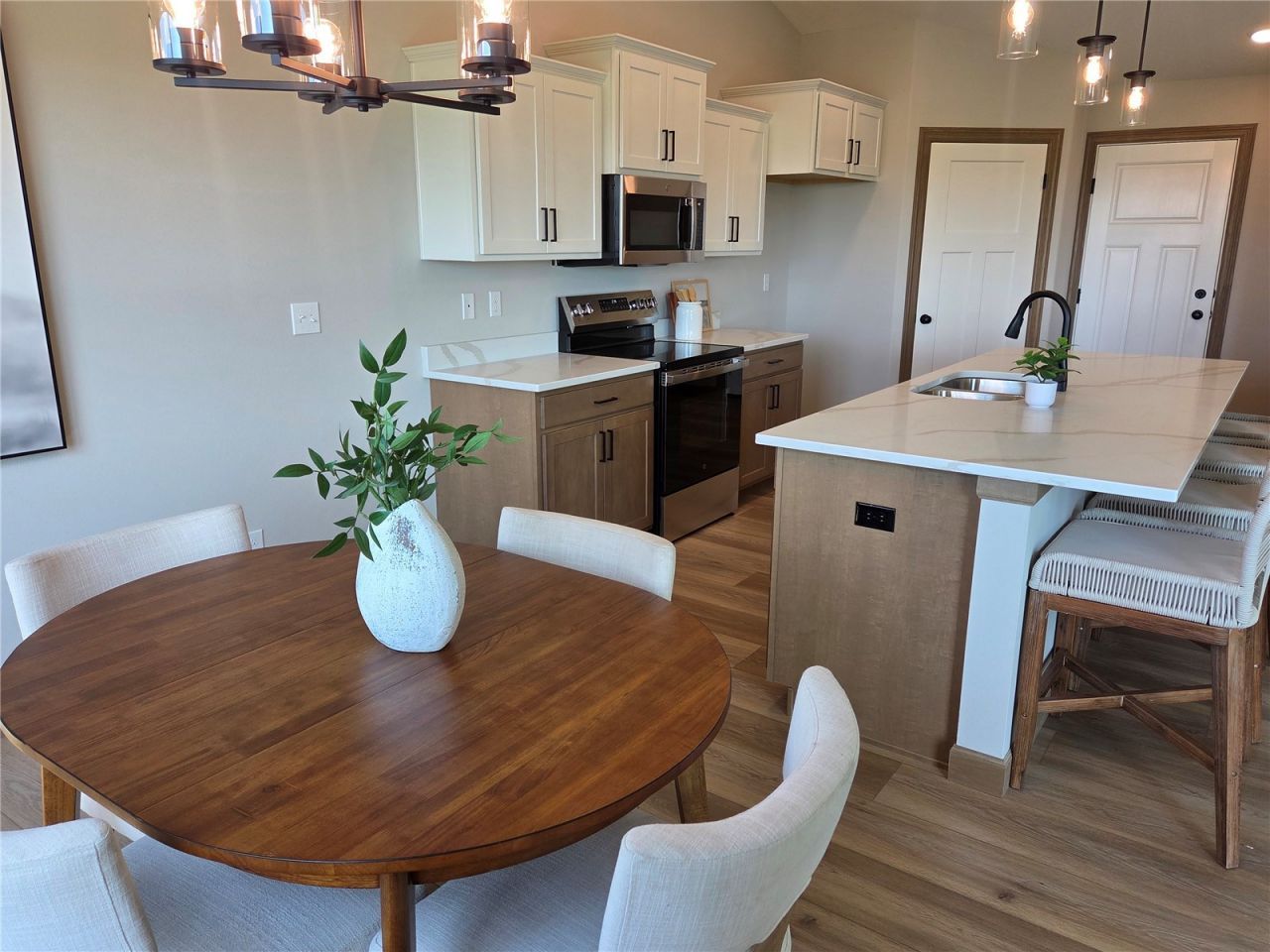 Located in Robins, this home offers the charm of a small-town setting with everyday convenience. Enjoy quick access to I-380 for an easy commute, along with the benefits of the Alburnett school district. Built by Jerry's Homes, a trusted third-generation builder with over 50 years of experience, and backed by a 12-5-10 Platinum Warranty, this home offers quality construction and peace of mind. This beautifully crafted home blends style, comfort, and functionality throughout. Luxury vinyl plank flooring flows seamlessly across the open-concept main level, offering both durability and a modern feel. The kitchen stands out with dark base cabinets paired with crisp white uppers, quartz countertops, and stainless-steel appliances?creating a clean, contemporary look. The Great Room over looks the open staircase that leads to the finished lower level, featuring a spacious rec room, fourth bedroom and a full bathroom. While within the city limits of Robins, the mailing address is Cedar Rapids 52411.