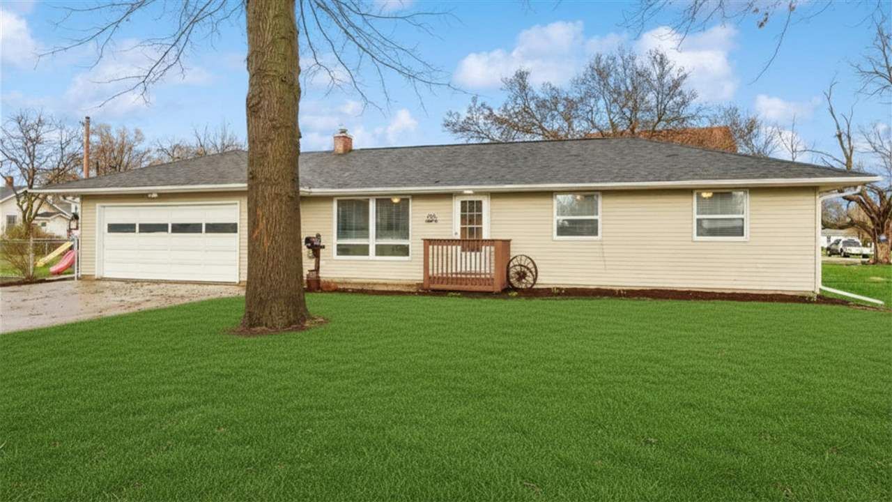 You'll love this cozy ranch-style home perfectly situated on a corner lot! The welcoming living room features a large picture window that fills the space with natural light, while rich hardwood floors flow throughout the main level. The kitchen offers plenty of cabinetry with soft-close features, under-cabinet lighting, crown molding, pantry closet, breakfast bar with seating, and a window above the sink overlooking the yard. The adjoining dining area provides easy access to the patio and fenced yard, perfect for entertaining or relaxing outdoors. The main level includes three bedrooms and a full bathroom with tub/shower, vanity, and tile surround. An additional recently added full bathroom features a stand-up shower, tile flooring, and vanity. Washer and dryer are included (washer new in 2025). Oversized attached garage adds great storage and convenience. Recent updates include a new water heater (2025) and new exterior doors to the home and garage (2023).