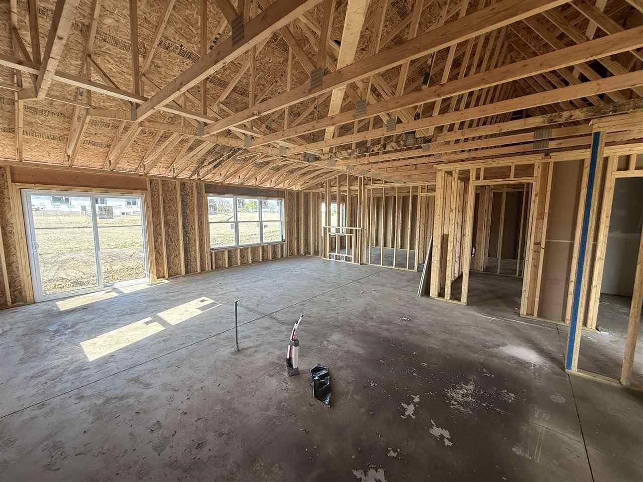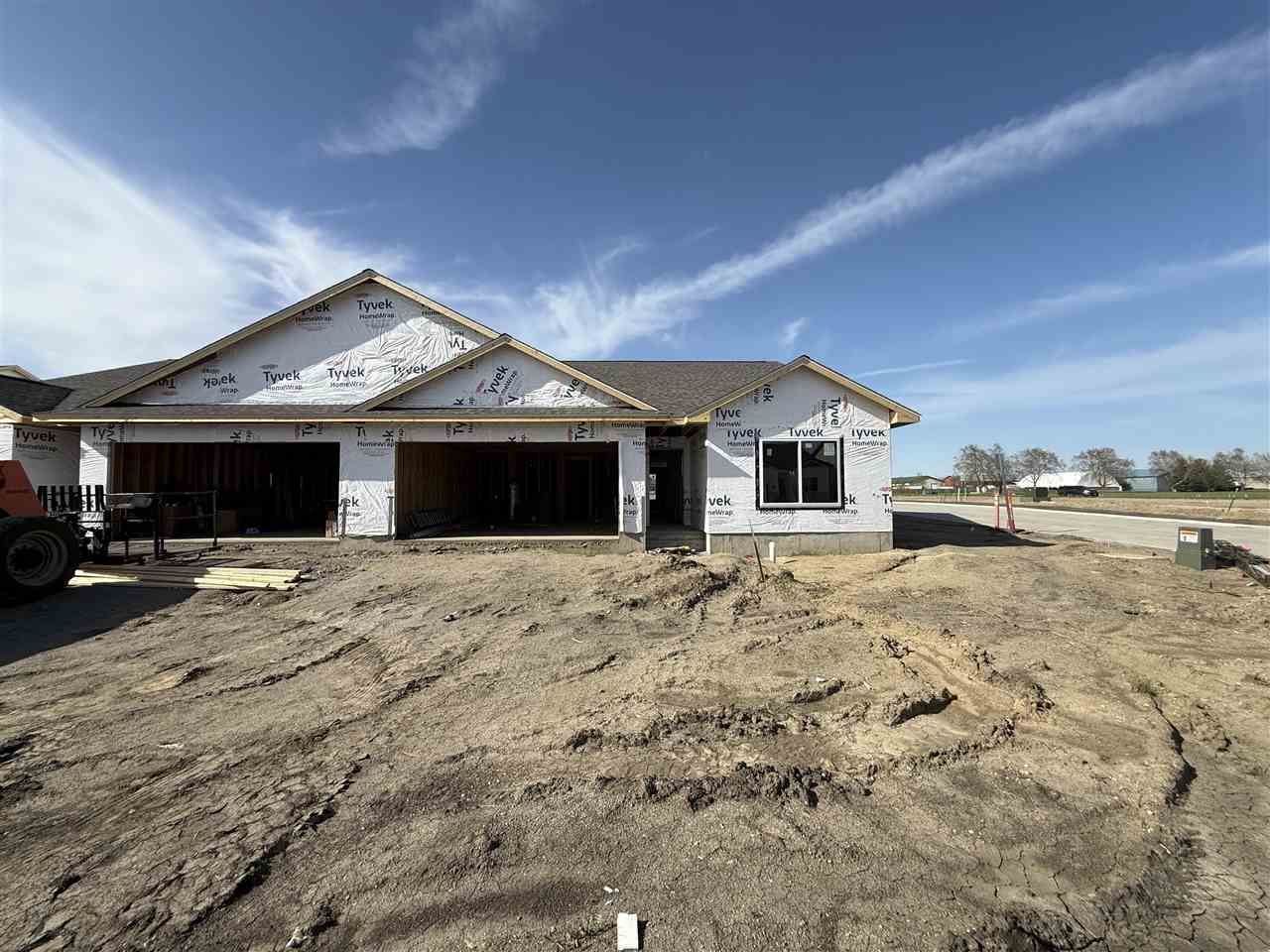 New construction zero lot offering 1,710 finished sq ft on the main level. This thoughtfully designed zero-step floor plan features an open-concept layout with spacious living room, dining area, and large kitchen with center island. Kitchen includes quartz countertops, stainless steel appliances (Frigidaire refrigerator, range, dishwasher & OTR microwave), stainless sink, and Moen Sleek matte black faucet. Main level includes 3 bedrooms and 2 bathrooms, including a primary suite with private bath and walk-in closet. Finishes throughout include LVP flooring in main living areas, carpet in bedrooms, Sherwin Williams Accessible Beige walls with Extra White trim, primed 2-panel interior doors, matte black hardware, and drywall-wrapped windows for a clean modern look. Exterior features CertainTeed Herringbone lap siding with board & batten accents, J&N Stack-Ease Whiteland stone, white vinyl windows, and attached 2-car garage. Energy-efficient mechanicals and quality construction throughout. Located in a desirable North Liberty neighborhood with easy access to schools, trails, shopping, and I-380. Expected completion date of July 2026. Finishes shown are conceptual and may not be final.